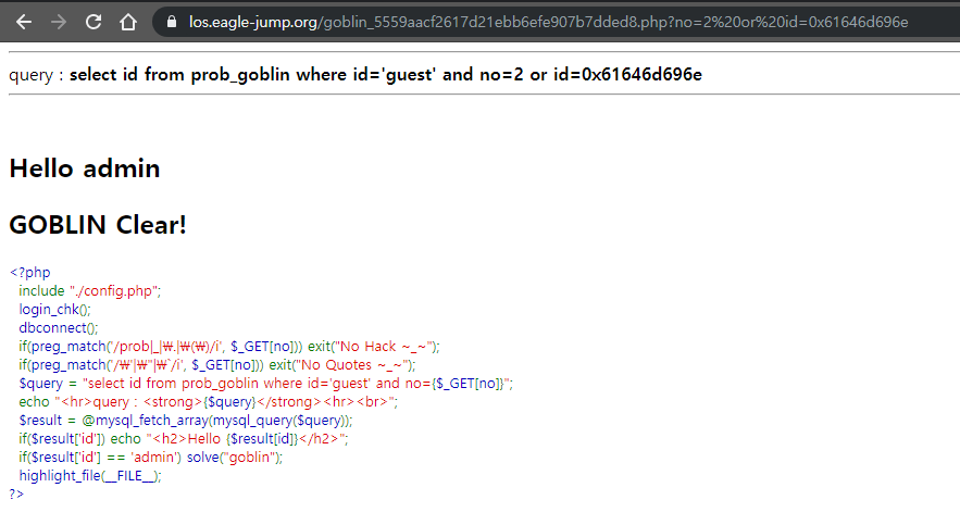 그렇게 위 값을 id로 전달해주면 admin으로 인식하며 문제가 풀리게 된다.