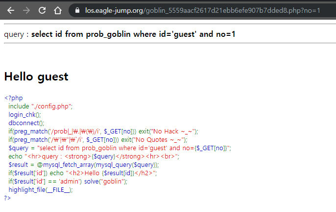코드를 보니 이번에는 id가 하드코딩되어있고 우리가 간섭할 수 있는 부분은 no 부분인것 같다.