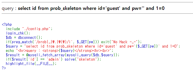 admin으로 로그인해야하는데 1=0이라는 조건때문에 무슨값을 입력해도 무조건 false라는 결과가 나오도록 되어있다.