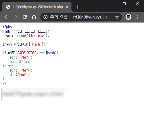 240610708을 md5로 암호화한 값과 비교했을 때 같으면 플래그를 출력해준다 한다.