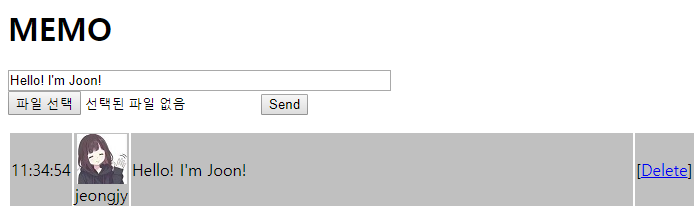 아무런 텍스트를 입력하고 Send버튼을 누르니 올라간다.