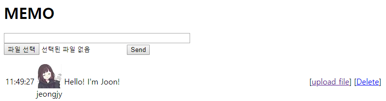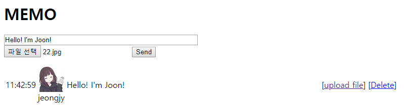 [upload file] 버튼을 누르니 업로드한 사진파일이 정상적으로 출력되는것을 확인할 수 있었다.