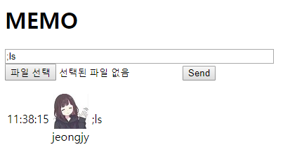 memo라는 Input에서 보내지는 값이 배쉬 명령어로 처리되는지 확인하기 위해 ;ls를 입력해보았지만 아무 값도 나오지 않았다.