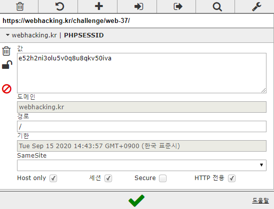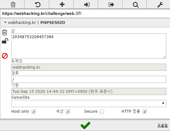 그럼 조건을 맞춰주기 위해 저 세션 ID를 모두 지우고 아무 숫자로 바꿔주고 다시 로그인하여 활성화시켜주자.