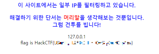 그랬더니 127.0.0.1(로컬)로 인식이 되며 플래그가 출력된다.